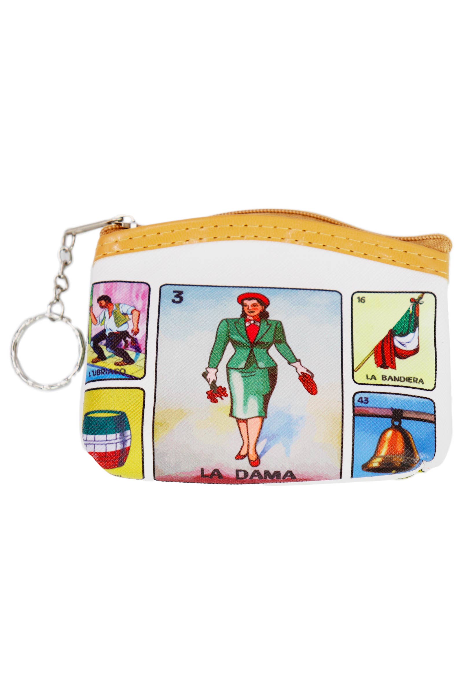 La Loteria Portrait Print Zipper Closure Saffiano PU Leather Coin Purse Pouch Bag
