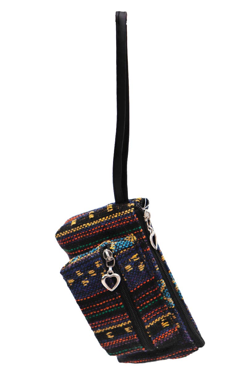 Boho Navajo Baja Tribal Woven Double Zipper Closure Coin Purse Pouch Bag with Wristlet